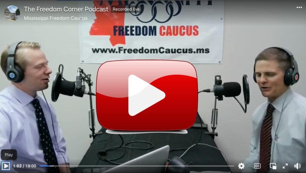 Freedom Corner PodcastDana CriswellJan 23, 2022ShareJoin us every Thursday for the Freedom Corner Podcast to see the latest with the Mississippi Freedom Caucus.PreviousNext
