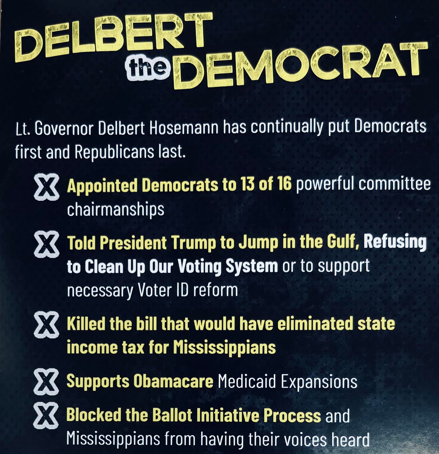 So if Mississippi Republicans want their government to share the same conservative values as they do, then Delbert Hosemann can not be their choice.